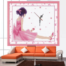 新款印花十字绣钟表美丽心情女孩卡通人物可爱客厅卧室简单小幅画