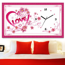 十字绣带钟表挂钟客厅卧室创意时钟线绣简单清新款刺绣现代中国风