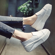 2017春季新款松糕厚底懒人鞋女韩版皮面小白鞋百搭学生女鞋子单鞋