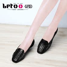 2017春夏新款真皮单鞋女平底网纱牛皮拼接软皮软底包头舒适5009