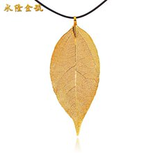 黄金首饰金叶子吊坠表面电镀足金镶嵌树叶脉镀金项链女款毛衣链