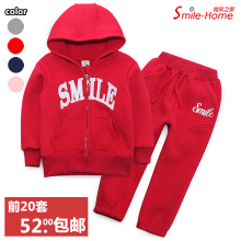 儿童套装2017春秋男女童宝宝连帽拉链绒卫衣长裤运动服休闲2件套