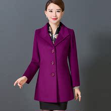 中老年毛呢外套女中长款韩版修身大码呢子大衣秋冬加厚中年妈妈装