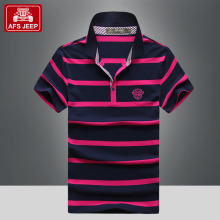 AFS JEEP短袖T恤 男夏季宽松大码翻领条纹品牌polo衫水洗棉体恤