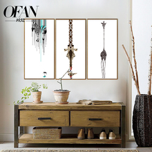 欧梵实木北欧简约彩羽毛装饰画客厅沙发卧室床头挂画现代横幅壁画