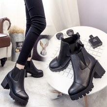 2017春秋新款韩版高跟短靴女粗跟防水台厚底英伦马丁靴女鞋女单靴