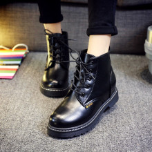 2016秋冬加绒女短靴马丁靴韩版休闲短筒女鞋学生棉靴圆头皮鞋皮靴