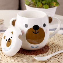 可爱创意个性儿童马克杯 陶瓷杯子 情侣杯 萌水杯带盖带勺 动物杯