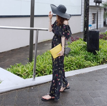 韩国代购正品 Yansae春季性感一字肩连体雪纺花纹休闲裤 10304