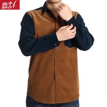 四个1纯棉灯芯绒衬衫拼接男士休闲条绒衬衣加肥加大码秋装休闲衣