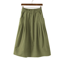 外贸日单糖果色舒适透气棉麻大摆时尚百搭松紧腰女式半身裙长裙