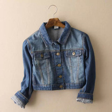 2014秋装牛仔外套原单短款水洗磨白翻领长袖女式牛仔外套