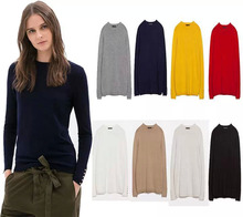 2014外贸秋冬新品欧美风纯色圆领修身百搭纽扣袖口女式针织衫线衣