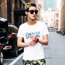 夏季短袖t恤男 圆领纯棉宽松韩版青少年学生潮流百搭印花半袖上衣