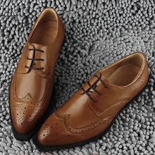 正品布洛克雕花真皮休闲男鞋系带尖头英伦皮鞋男系带漆皮复古男鞋