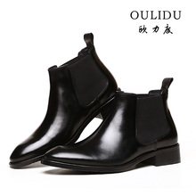 2016冬男士真皮英伦男靴子皮鞋韩版尖头潮流时尚短靴切尔西靴男