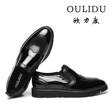 春季布洛克单鞋男鞋英伦男士复古商务休闲皮鞋英伦皮鞋男系带漆皮