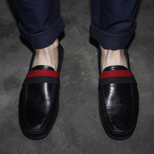 英伦休闲鞋男低帮乐福鞋 2016新款真皮套脚男鞋 黑色马毛皮鞋男