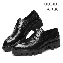秋冬新款布洛克压花英伦男鞋 欧美时尚男士鳄鱼纹低帮系带牛皮鞋