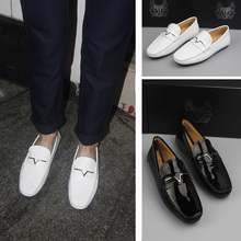 2017春季新款v字扣白色漆皮豆豆鞋 驾车男鞋英伦男士休闲鞋潮鞋