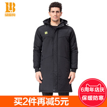 绿茵豹秋冬长款运动大衣男保暖加厚棉服足球篮球训练服男帽可拆卸