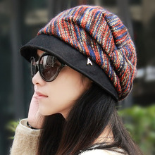 帽子女韩版潮秋冬天彩条渔夫帽韩国高雅气质圆顶针织盆帽女帽包邮