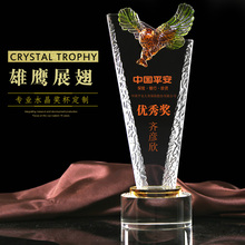 创意高档水晶琉璃奖杯奖牌定制 琉璃老鹰 颁奖礼品 免费刻字