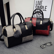 时尚潮流波士顿包2017秋冬新款撞色拼接女包毛球挂件手提包单肩包