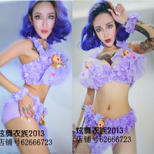 新款酒吧女歌手ds演出服夜店领舞服性感dj爵士舞紫色花朵芭比套装
