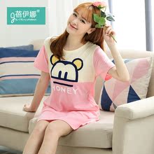 可外穿夏季新款女睡裙纯棉短袖连衣裙卡通女士大码睡衣夏款家居服