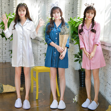 8227 夏季韩版性感仿真丝睡衣女式衬衫睡裙宽松可爱纯色家居服