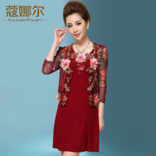 中老年女装婚礼妈妈装两件套装连衣裙春装长袖中年加大码40-50岁