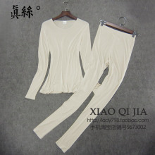 100%桑蚕丝秋冬保暖内衣打底女士真丝针织秋衣秋裤睡衣套装家居服