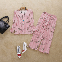 2017新品绢丝套装重磅真丝家居睡衣粉套装 长袖长裤 简单大方款