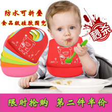 出口美国宝宝硅胶围兜口水巾食饭兜防水大号立体免洗吃饭软围嘴兜