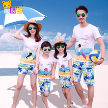 亲子装夏装全家装2017新款海边大码母女装沙滩一家三口母子家庭装