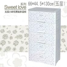 康家抽屉式收纳柜 特大号加厚高档碎花塑料储物柜 滑轮五层整理箱