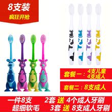 【包邮】儿童牙刷3-12岁超细软毛抗菌护龈清洁成人牙刷 8支