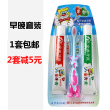包邮雪豹fe 儿童牙膏牙刷套装宝宝防蛀可吞无氟可吞咽3-6-12岁