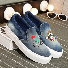 夏季卡通帆布鞋女鞋韩版一脚蹬懒人鞋休闲牛仔布鞋女学生平底板鞋
