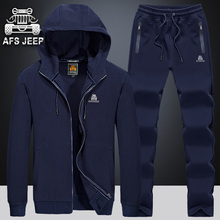 AFS JEEP春季时尚运动套装纯色男连帽开衫宽松大码休闲潮卫衣套装
