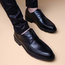 春秋休闲皮鞋男厚底英伦时尚男鞋圆头系带潮流青年鞋松糕底内增高