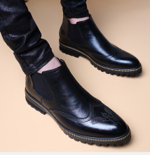 春秋潮款短靴男英伦复古皮靴子男皮鞋布洛克高帮鞋内增高切尔西靴