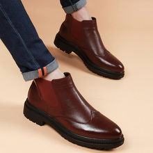 切尔西靴男靴英伦春秋潮流青年布洛克男鞋高帮厚底圆头短筒靴套脚