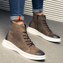 2016秋季新款男士高帮板鞋增高青年学生高帮皮鞋短靴时尚潮鞋百搭