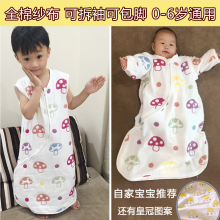 无荧光春夏薄纯棉三六层蘑菇纱布新生婴儿睡袋儿童防踢被拆袖包脚
