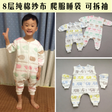 高品质日本春秋8层有机棉纱布分腿婴儿睡袋 宝宝防踢被睡袍可拆袖