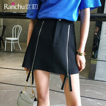 然初2017新款女装夏季韩版高腰显瘦百搭半身裙前双拉链装饰短裙