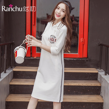 然初2016新款女士韩版宽松显瘦印花连帽中长款裙时尚连衣裙