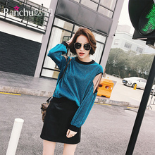然初2017新款女装春季韩版直筒显瘦长袖圆领卫衣网纱拼接套头衫